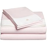 The Rooftop Terrace fitted sheet from Tommy Hilfiger offers a fresh, feminine take on classic tailoring. Crafted from 300-thread-count cotton percale brushed during the finishing process for extra softness, the sheet features a field of slender pink-and-white stripes in Hilfiger's signature Ithaca Stripe pattern. Add the coordinating flat sheet and pillowcase (sold separately) and top with the bold florals and stripes of the decorative pillows and comforter or duvet sets for an elegant ensemble. Measuring 60 by 80 inches, the queen fitted sheet offers deep corners that can accommodate mattresses up to 18 inches thick and can be cared for at home in the washer. Imported.